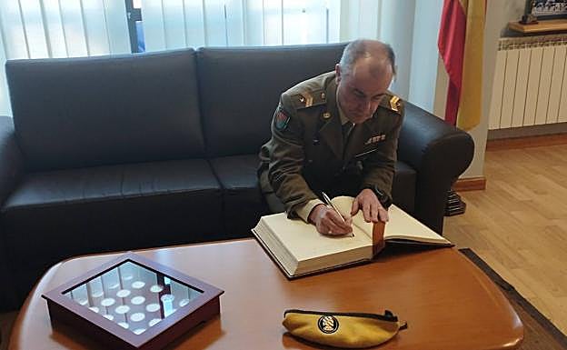 El militar ha dejado constancia en el libro de firmas de Alcaldía el fuerte lazo que le une al municipio y sus vecinos.