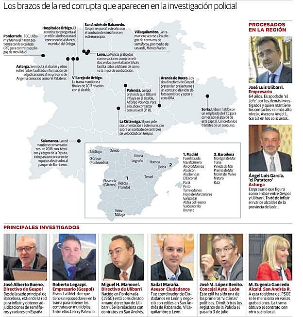En las diligencias figura que el Ayuntamiento de Villaquilambre (León), un núcleo con unos 18.500 habitantes, ingresó hasta 400.000 euros por multas este año. La concejala de este municipio Mónica Varón (PP), investigada, recibió información de la trama para hacer los pliegos a la medida de la red con unos equipos y unos plazos que se acortaban a veces en contra de la opinión de los técnicos.
