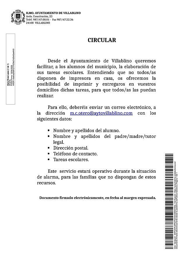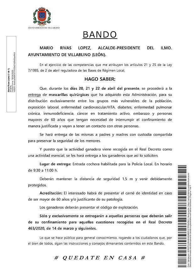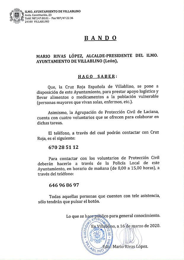 El Ayuntamiento de Villablino procederá a la entrega de mascarillas a la población vulnerable El bando del alcalde, Mario Rivas, pone a disposición de los ciudadanos dos telefonos para solicitar ayuda social Leonoticias León Martes, 24 de marzo 2020 | Actualizado 16/04/2020 17:45h. Comenta Compartir Ampliar Ampliar Ampliar Reporta un error
