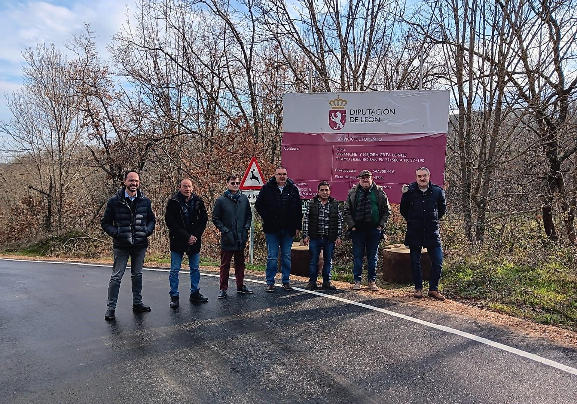 El vicepresidente de la Diputación y diputado de Infraestructuras, Roberto Aller, ha sido el encargado de recibir las obras que la institución provincial ha realizado en la LE-6425 entre las localidades de Filiel y Boisán, acompañado por los representantes municipales de la zona. Para la mejora de esta vía se han destinado 1.207.000 euros.