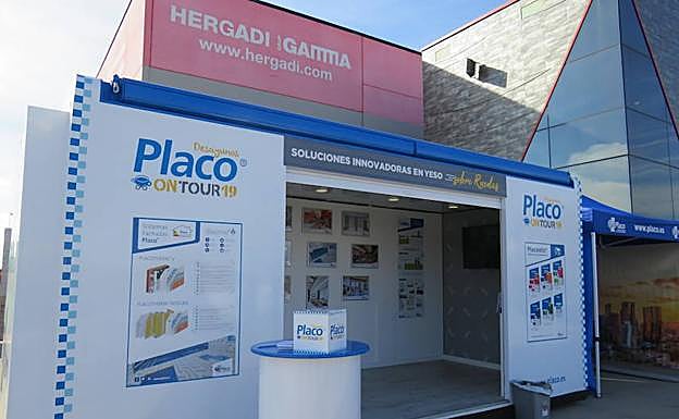 Placo hace parada en León para mostrar las últimas novedades en placas de yeso laminado. El centro elegido ha sido la sede de Hergadi Gamma en el polígono de Onzonilla donde desde hace años cuentan con los productos de la compañía. «El tour circula por toda España y han venido a León con su remolque expositivo que presenta Placo», explica Fernando García, gerente de Hergadi Gamma.