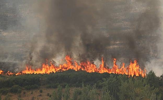 Los vecinos de la comarca leonesa de La Cabrera, a la que pertenecen los municipios de Encinedo y Truchas, están viviendo con angustia un incendio que está afectando a al menos más de mil hectáreas.