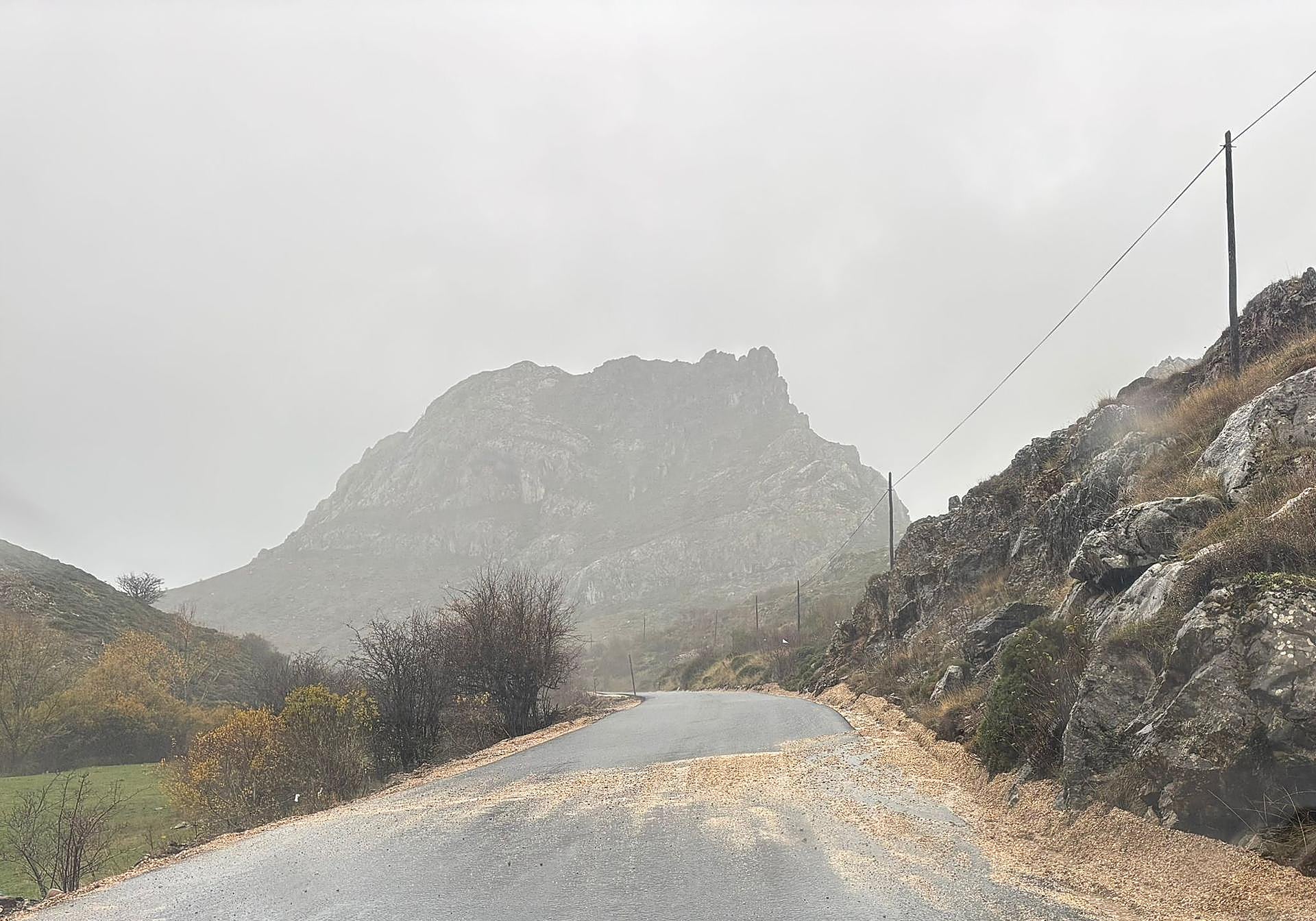 Los trabajos de asfaltado habían acabado el pasado 7 de noviembre y este fin de semana los daños del agua eran visibles en múltiples puntos de la vía. En una de las zonas de la LE-3503 un pequeño argayo ha caído sobre la vía, en otras zonas la carretera se ha llenado de arena y piedra que durante la obra había colocado a los laterales de la misma. Y en otras zonas el agua caída por la montaña ha socavado el asfalto, dejando una parte hueca.