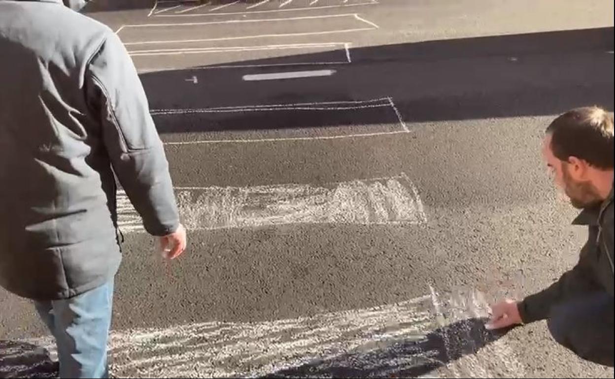 Con una tiza han ido repasando las zonas donde no hace mucho había pasas de cebra. De hecho, diferentes viandantes han aprovechado la circunstancias para cruzar la carretera por estas zonas que estaban siendo pintadas por estos convecinos y el concejal popular.