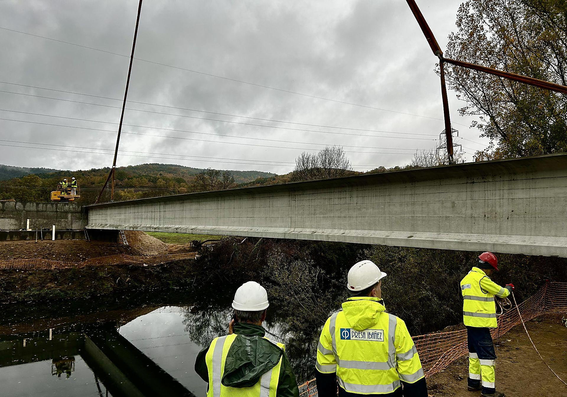 Se trata de un paso clave en la urbanización de este área industrial, y es que este nuevo puente es una infraestructura esencial para conectar el polígono con la carretera LE-4514. Si ahondamos en las características, tendrá 42 metros de luz, un solo vano y losa de hormigón armado. Actualmente se están colocando las siete vigas prefabricadas pretensadas, 65 toneladas cada una, que se están izando en una operación de gran complejidad técnica mediante una grúa de 1.200 toneladas.
