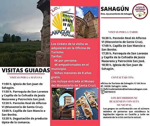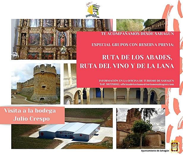El Ayuntamiento de Sahagún ha programado tres rutas temáticas por la Villa para promocionar el patrimonio histórico, cultural y gastronómico de la comarca. Estas visitas guiadas con reserva previa son la Ruta de los Abades y la Ruta de la Lana y el Vino, con una expreiencia enoturística incluida.
