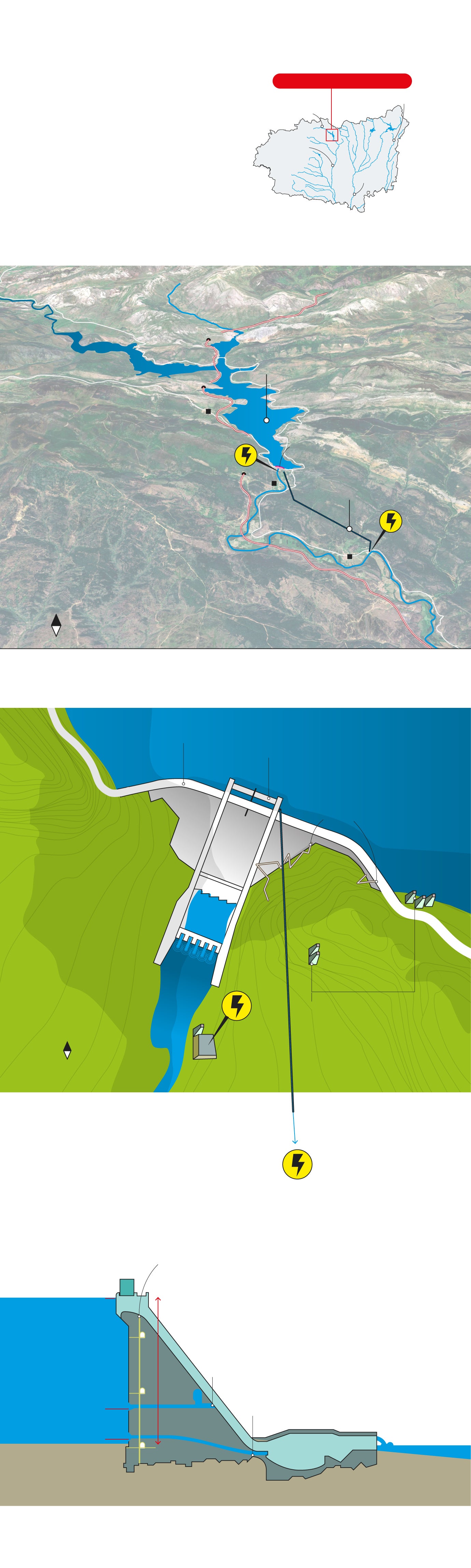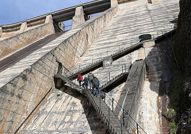Tras ascender por una escalera, la presa se abre ante nosotros. En el interior tres galerías a 30, 60 y 90 metros son la sala de máquinas del impresionante muro. Desde estos túneles de inspección se verifica si existe un comportamiento anormal de la presa, el control adecuado de los elementos de auscultación y las cámaras para acceder a las compuertas y repararlas.