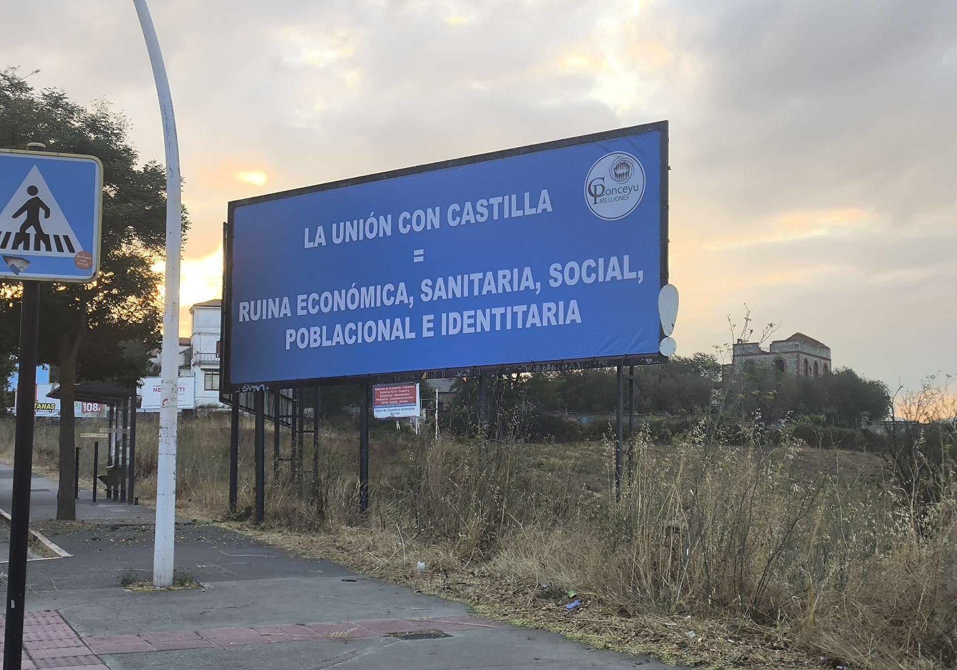 Conceyu País Llionés ha instalado dos vallas reivindicativas con el mismo texto en Ponferrada (con fondo azul) y en León (con fondo púrpura) poniendo en evidencia lo que dicen, la Junta representa para el País Leonés tras 42 años de autonomía: «La Unión con Castilla=Ruina económica, sanitaria, social, poblacional e identitaria».