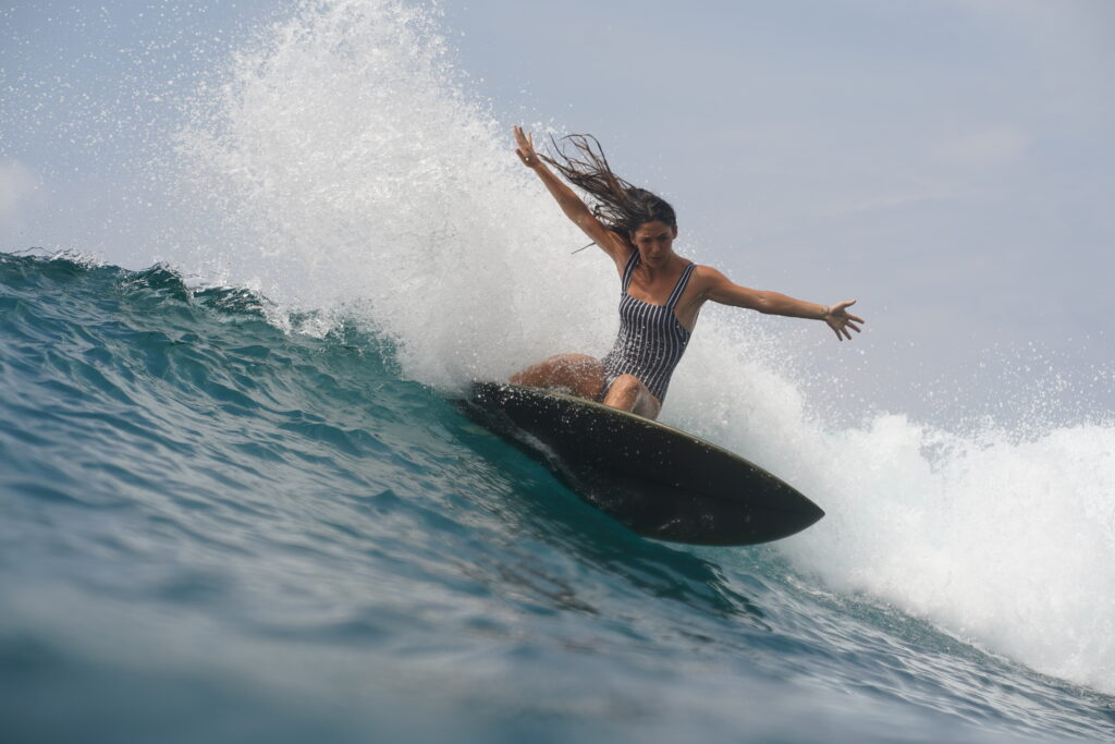 Garazi Sánchez nació con una tabla de surf bajo el brazo, comenzando a surcar las olas cuando solo tenía siete años. El concepto de viaje y naturaleza corre por sus venas. Es una amante empedernida del mar y la naturaleza y no concibe su vida sin avistar en el horizonte esa franja color azul que tanta dicha le está trayendo en su vida.