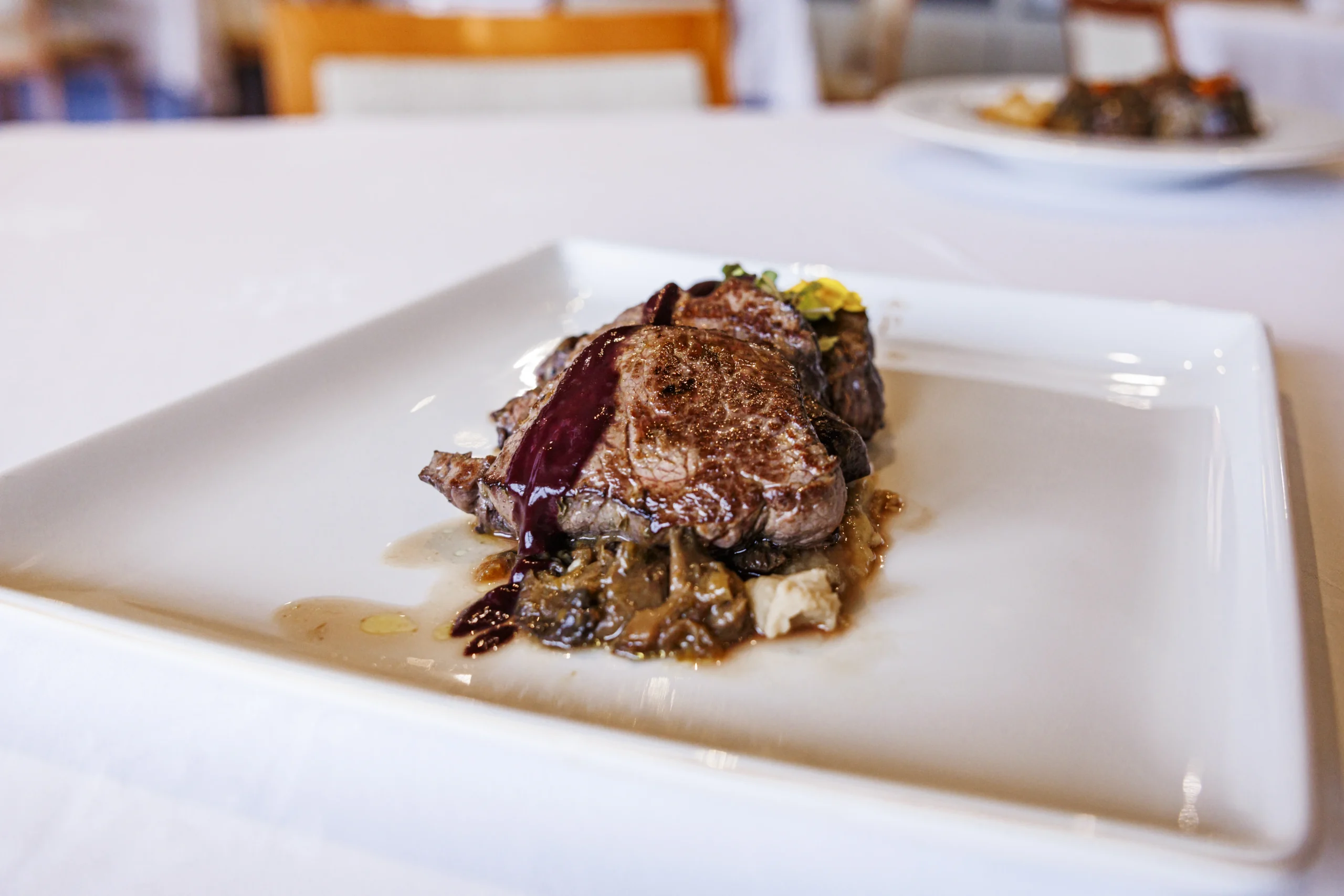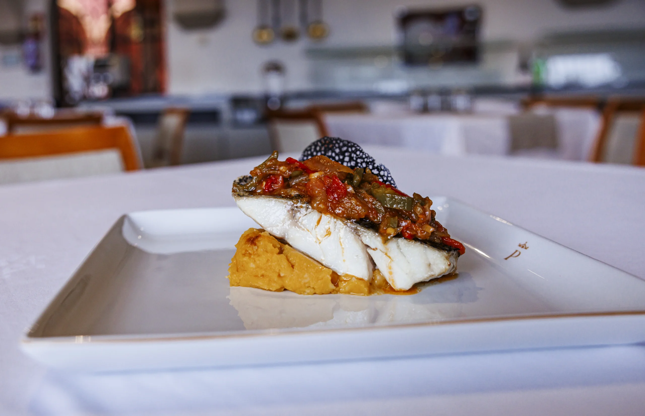 No se crean, sin embargo, que no hay en sus platos una sofisticación envidiable. Por más que su lema sea “el cariño y el amor”, junto con una pasión por la música que le ayuda a concentrarse (“cada vez que entro en la cocina es una fiesta”, confiesa) tiene un talento en sus manos. La sopa de tomate merece una mención especial por todo lo que pueden ocultar los detalles. El privilegio de este enclave es su cercanía con todo lo bueno, el mar y la montaña. Por eso, empezar con una corvina a la roteña, con su cama de cremoso de calabaza, despierta los sentidos. La sierra se presenta a través de dos platos difícilmente mejorables, el lomo de ciervo con puré de castañas y setas de temporada, y el rabo de ternera a la jerezana. El primero es una fina obra del trabajo del tiempo, la espera ve la recompensa de la ternura, que se combina con la delicadeza del puré de castañas y las setas para crear un recuerdo que perdurará en quien lo pruebe. El rabo de ternera a la jerezana mide su calidad por lo fácil que es separar la carne del hueso; el a la jerezana se compone de una base que lleva un sofrito de cebolla, apio, puerro, ajo, pimiento rojo, pimiento verde, zanahoria y puerro. Y no podemos olvidar sus habituales patatas.