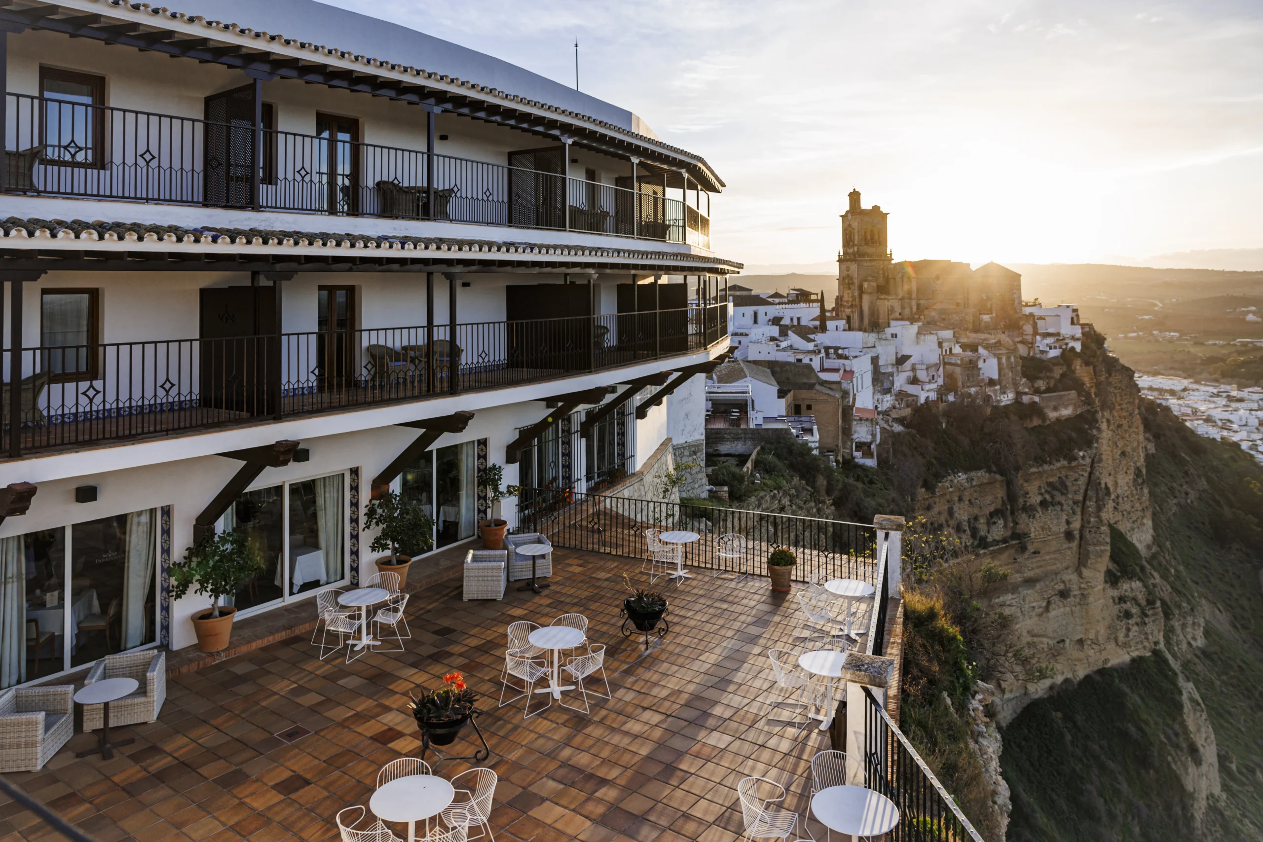 Frente a un alcázar andalusí y a una basílica gótica de origen mudéjar, el Parador de Arcos de la Frontera es el punto de partida para visitar los pueblos blancos más bonitos de España
