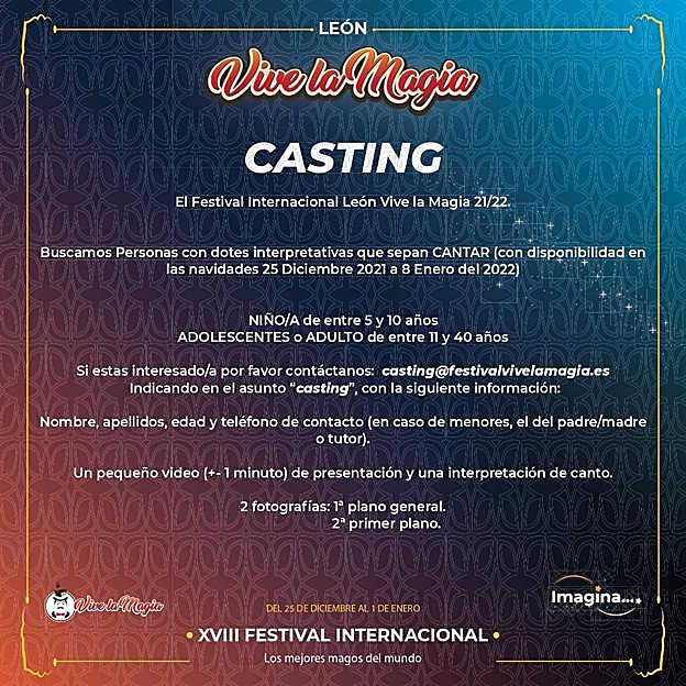 Los organizadores del festival 'Vive la Magia' han abierto un casting para buscar niños de entre 5 y 10 años y adolescentes de entre 11 a 40 años con dotes interpretativos que sepan cantar
