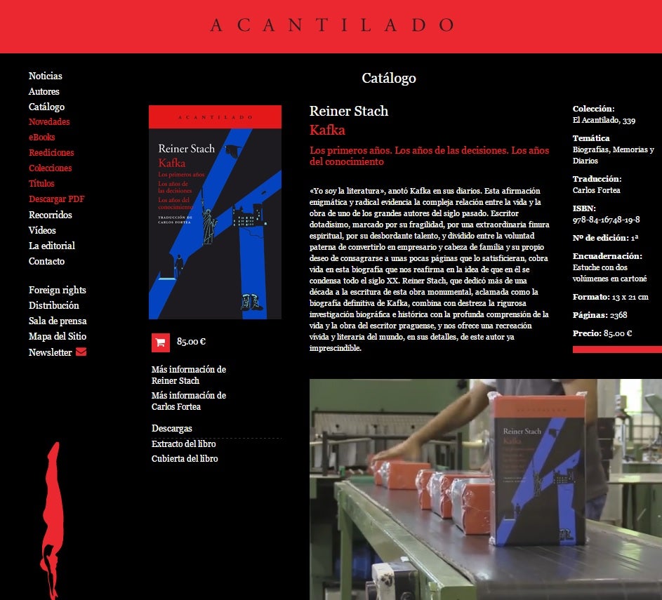 Venta de 'Kafka', de Reiner Stach, en la página web de Acantilado.