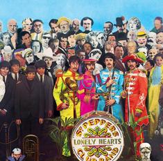 Su extravagante portada, que también hizo historia, se mantiene en las ediciones del aniversario. El collage de Peter Blake y Jann Haworth, inspirado en un boceto de McCartney, muestra a los Beatles rodeados de una multitud de personajes: de Marx a Poe pasando por Bob Dylan, Marlyn Monroe, Marlon Brando, Aleister Crowley, Oscar Wilde o Shirley Temple. Se vetó a Jesucristo y a Adolf Hitler y se incluyó a Mae West, en principio remisa a aparecer en la carátula.