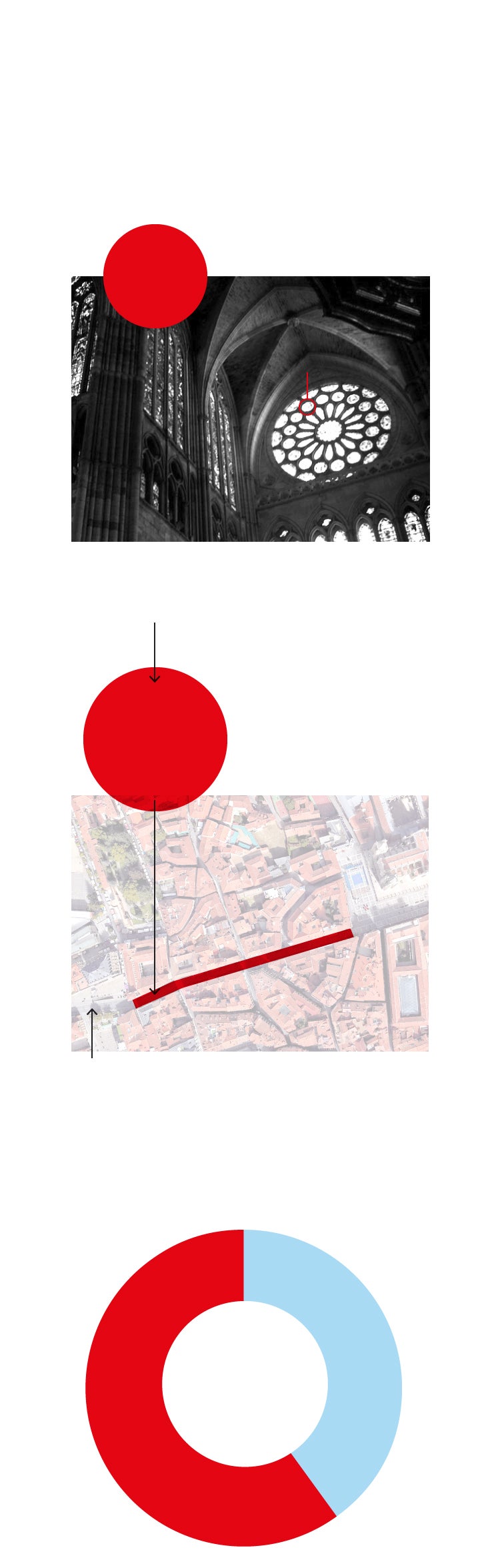 El rosetón está compuesto por 49 vidrieras o ventanas