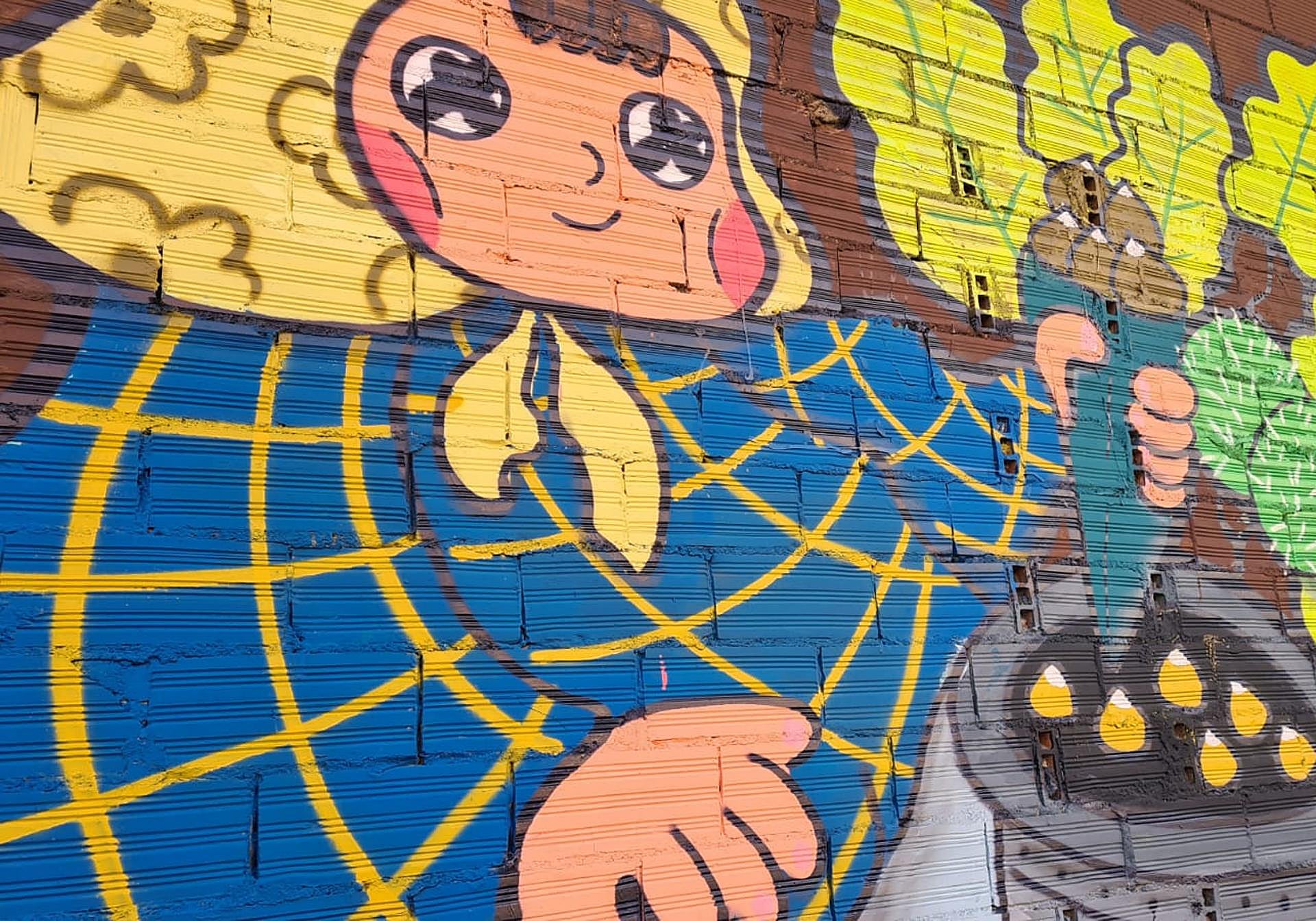 Aprovechando bajos sin utilidad, un grupo de artistas leoneses ha decorado el ladrillo y dibujado diferentes figuras