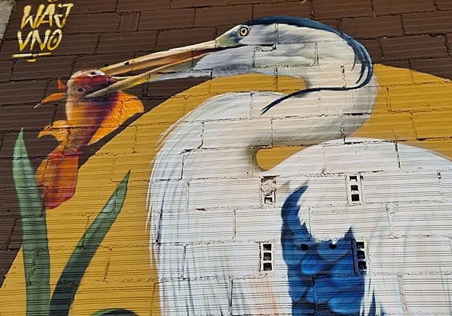 Donde había muros de ladrillo hoy hay una castañera muy leonesa, una ninfa, una mariposa enjoya y una garza. El arte ocupa lo que nadie quiere utilizar.