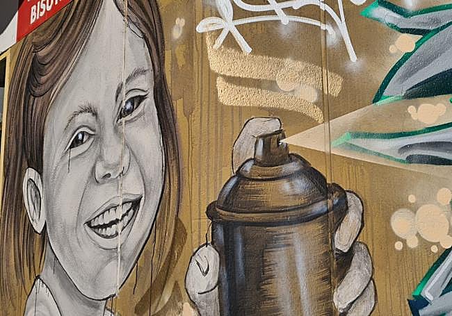 Aprovechando el muro de una tienda asiática ubicada entre el paseo del Ferrocarril, la calle Astorga y la propia Doctor Fleming, otro artista representó a una niña grafitera.