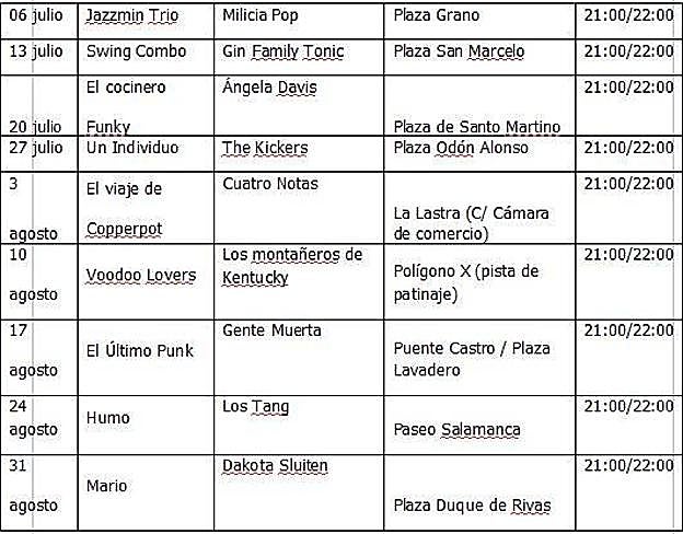 Durante los miércoles de los meses de verano, distintos escenarios (Puente Castro, La Lastras, Plaza Santo Martino, entre otros) acogen un total de 18 microconciertos de 45 minutos de duración y para todos los públicos y de un estilo variado.