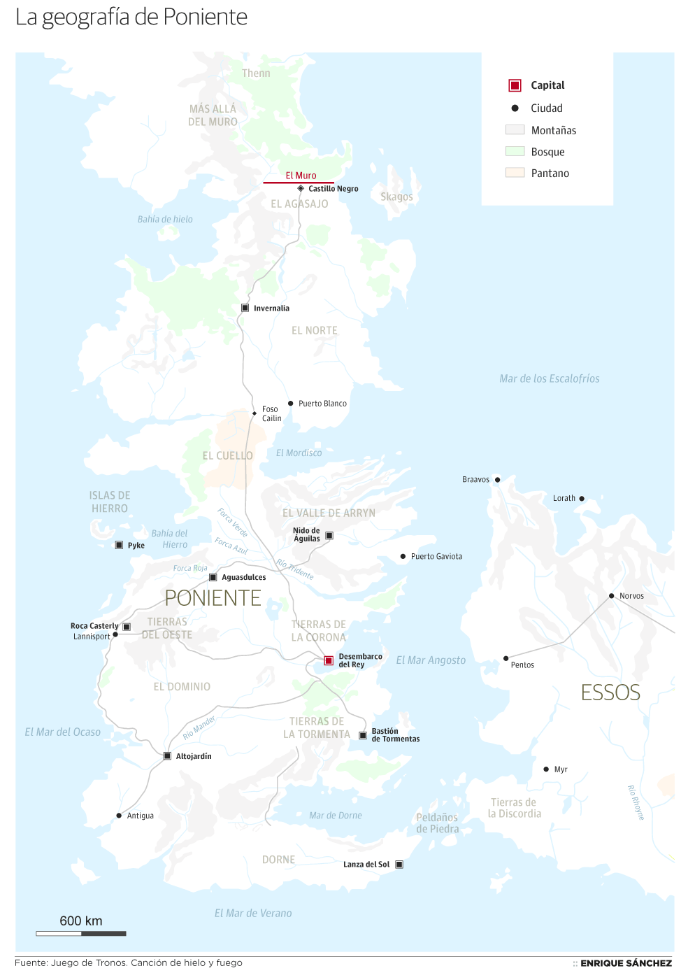 ¿Cómo sería el mundo de 'Juego de tronos' si se pudiera recorrer en coche? Entre hoy y mañana, este periódico va a publicar una serie de mapas* que suponen la comparación entre el vasto territorio imaginado por George R. R. Martin y los mapamundis reales de la Tierra. Además, se ha elaborado una representación gráfica de Poniente, Dorne o los diferentes mares que rodean el espacio de la serie más vista de la televisión, en función tanto de su población como de las evoluciones de los juegos de poder que han marcado las siete entregas de esta saga.