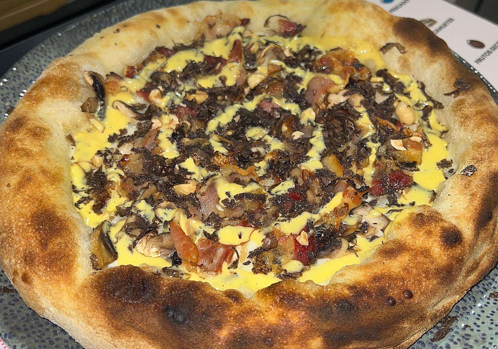 Al principio dependía de la trufa de temporada, pero con el tiempo estabilizó la receta: «Una vez que vi el éxito aposté por la trufa negra y es la que lleva actualmente. Ya tenemos proveedor oficial». La pizza se ha mantenido todo el año y se ha convertido en una de las señas de identidad del local: «La tenemos puesta a lo grande en la carta, ya la tenemos que poner».