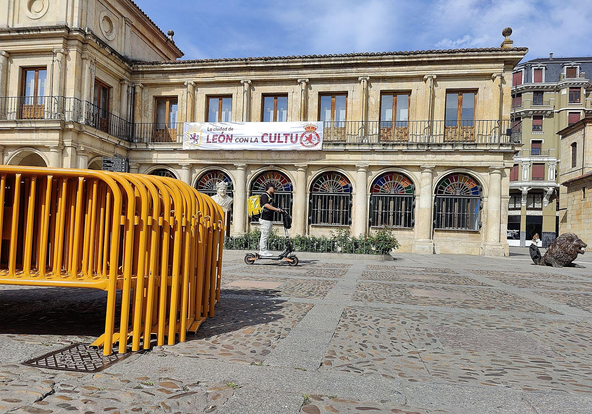 Las labores de limpieza, habituales de una jornada dominical, se completan sin mayor complicación y, como en la plaza de San Marcelo, se observan las vallas que perimetrarán el acceso de la comitiva festiva al edificio del ayuntamiento.