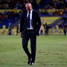 Zinedine Zidane, cabizbajo en el estadio Gran Canaria.