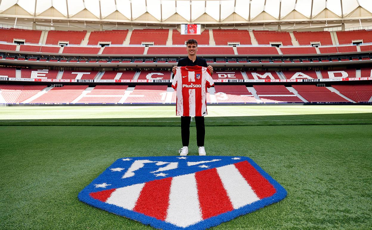 Ya por la tarde, y con nuevo aspecto incluido tras cortarse el pelo, Griezmann se trasladó al que vuelve a ser su hogar, el Metropolitano, donde posó junto al presidente del club, Enrique Cerezo, sosteniendo su nueva camiseta, en la que lucirá el dorsal '8' que dejó libre Saúl Ñíguez con su marcha al Chelsea, pues el '7' es ahora propiedad de Joao Félix. La instantánea junto al túnel de vestuarios y el escudo atlético del césped, además de la clásica imagen institucional junto al consejero delegado, Miguel Ángel Gil Marín, y el director deportivo, Andrea Berta, completaron el despliegue mediático del club, más interesado en que sean el césped y el vestuario los que hablen en favor del fichaje estrella.