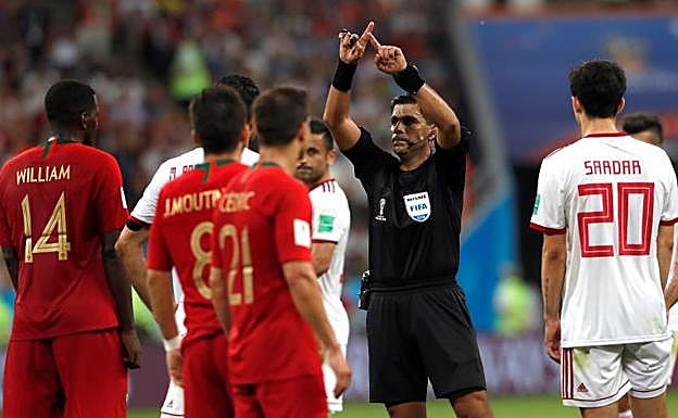 A las 21.49 horas, cuatro países se detuvieron con el pulso acelerado para seguir la decisión que unos árbitros tomaban en Rusia frente a unas pantallas. El destino y esas cosas extrañas que suceden de tanto en tanto en el fútbol quisieron que el VAR, innovador y discutido a partes iguales desde su implantación en este Mundial, decidiera la clasificación del grupo B con dos decisiones a la vez en los tiempos de prolongación del España-Marruecos y del Irán-Portugal. La espera resultó por momentos interminable, con una tensión propia de una película de ciencia ficción. Los colegiados hablaban por el pinganillo con la central de Moscú, ignoraban la presión de los jugadores con el automatismo de un robot y mostraban con un lenguaje corporal imposible de interpretar. En las zonas ocupadas por aficionados españoles en el Estadio de Kaliningrado, la mano del uzbeko Ravshan Irmatov señalando el centro del campo para conceder el gol de Iago Aspas se celebró más incluso que el propio remate del vigués.