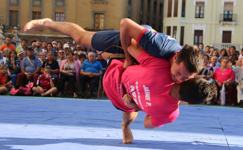 El corro de San Froilán volvió a reunir a cientos de curiosos en la Plaza de Regla para asistir al espectáculo del deporte autóctono leonés por excelenciaUn escenario inigualble. Una tradición de años y años que León mantiene, ama, cuida y respeta. En las fiestas con más folklore de León, las de San Froilán, la lucha siempre tiene su hueco al lado de la Catedral, la reina de la ciudad.