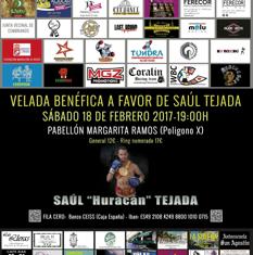 El Pabellón Margarita Ramos de la capital leonesa acogerá el sábado 18 de febrero una velada benéfica a favor de Saúl Tejada a partir de las 19:00 horas. La entrada general tendrá un precio de 12 euros y el ring numerado de 17 euros, cantidades que irán destinadas a sufragar los gastos relacionados con la recuperación del 'Huracán'.