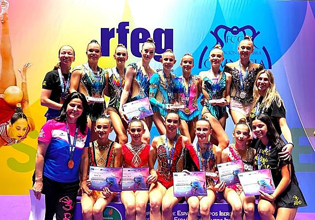 Pudieron ser hasta dieciocho medallas si la mala suerte no se hubiera cebado con Yassmín, que rompió el quinto metatarsiano en una mala pisada durante su ejercicio de cuerda cuando estaba a punto de refrendar la posición en el podio que parecía estar destinada para las alevines.
