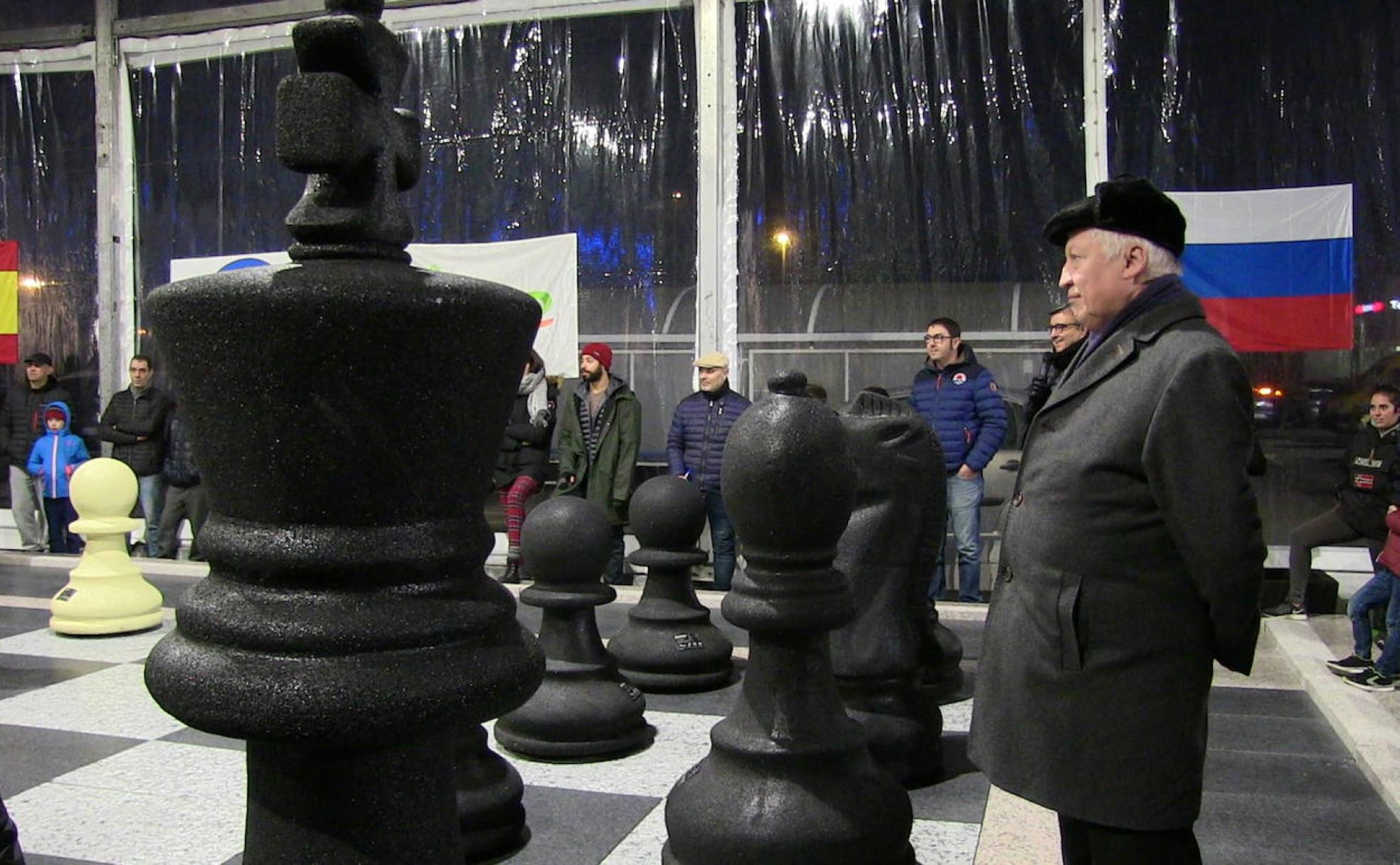 El excampeón del mundo Anatoli Karpov y el gran maestro leonés Jaime Santos han necesitado ayuda de sus particulares 'davides' para disputar una partida de ajedrez a gran escala.