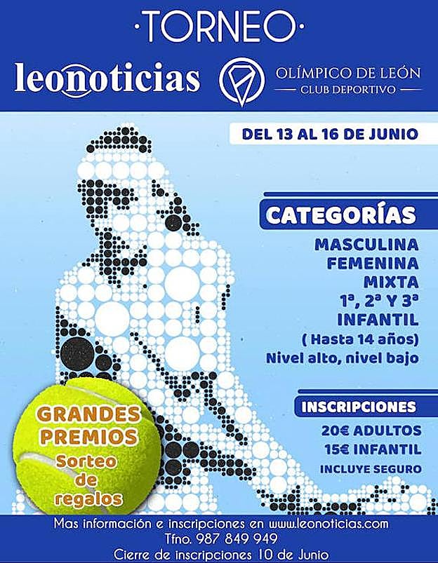 Las instalaciones del Olímpico de León acogerán este torneo desde el 13 al 16 de junio con premios de bienvenidas para todos los participantes | Habrá 1ª, 2ª y 3ª categoría en cuadro masculino, femenino y mixto, además de torneo para niños
