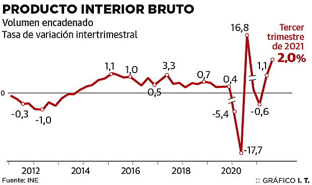 Con el dato adelantado del 2%, la economía crece a un ritmo del 8% en términos interanuales después de que en 2020 cayera casi un 11%. En cualquier caso, el avance del verano supone el segundo trimestre en positivo después de cinco con el PIB cayendo de forma consecutiva. El objetivo del Gobierno era finalizar 2021 con un alza del 6,5%, aunque este reto parece encontrarse cada vez más lejos.