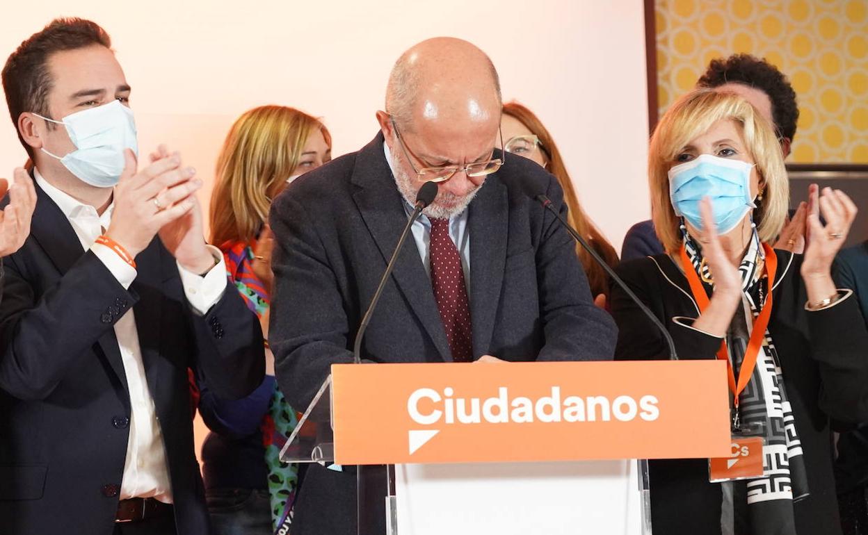 Igea, que comentó que repetiría «cada uno de los pasos de la campaña», fue recibido con un fuerte aplauso por los militantes presentes al entrar en el salón habilitado para la rueda de prensa al grito de 'Somos Ciudadanos'. También agradeció el apoyo de la presidenta del partido, Inés Arrimadas: «Hoy más que nunca es mi presidenta, compañera y amiga». Arropado por la exconsejera Verónica Casado, el director de Campaña de Cs, José Miguel García, la coordinadora autonómica, Gema Villarroel, y el vicesecretario general de la formación naranja, Edmundo Bal, entre otros, Igea salió a dar la cara para subrayar que hoy es el día en el que «más orgulloso» está de pertenecer al partido y trasladó las gracias a un grupo de incondicionales que llenaron el salón del Hotel NH Ciudad de Valladolid, a los que alabó por «creer en este espacio, en el acuerdo, en la política» y por no haberse «rendido hasta el último segundo».