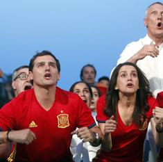 Ataviado con la camiseta oficial de la Selección, había querido dejar todo el protagonismo a los Iniesta, Piqué, Nolito y compañía. Aunque al final también se soltó y se unió a la goleada. "Hemos dado suerte a la selección". El púnico hizo la ola: "Olé, olé, España, España" y todos con la Roja. Al fina y al cabo, a lo que habían ido era a ver un partido. Todos acabaron como empezaron: "Yo soy español, español". Sonaba en Barcelona, extremo que para Rivera debería ser normal. Aunque hasta ahora no lo era.