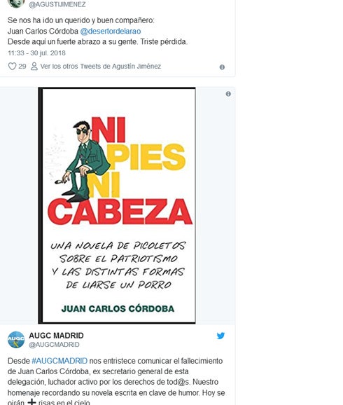 Así, Gonzo, colaborador del mismo programa en el que Córdoba era guionista, decía: «El bueno de Juan Carlos se ha ido con la risa a otra parte y deja muy tristes a los que compartían el día a día con él porque era puro buen rollo y muchas muchas risas».