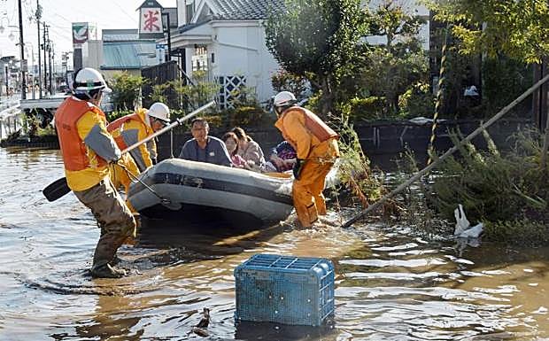La tormenta, acompañada de lluvias de una intensidad «sin precedentes», sembró la desolación al pasar por el centro y el este de Japón. En la región de Nagano (centro), se registraron importantes inundaciones. Un dique cedió, dejando vía libre a las aguas del río Chikuma en una zona residencial en la que las viviendas quedaron anegadas hasta el primer piso. En Kawagoe, al noroeste de Tokio, socorristas evacuaron en barco a un grupo de personas mayores, algunas en silla de ruedas, de una residencia de ancianos, constató la agencia AFP.