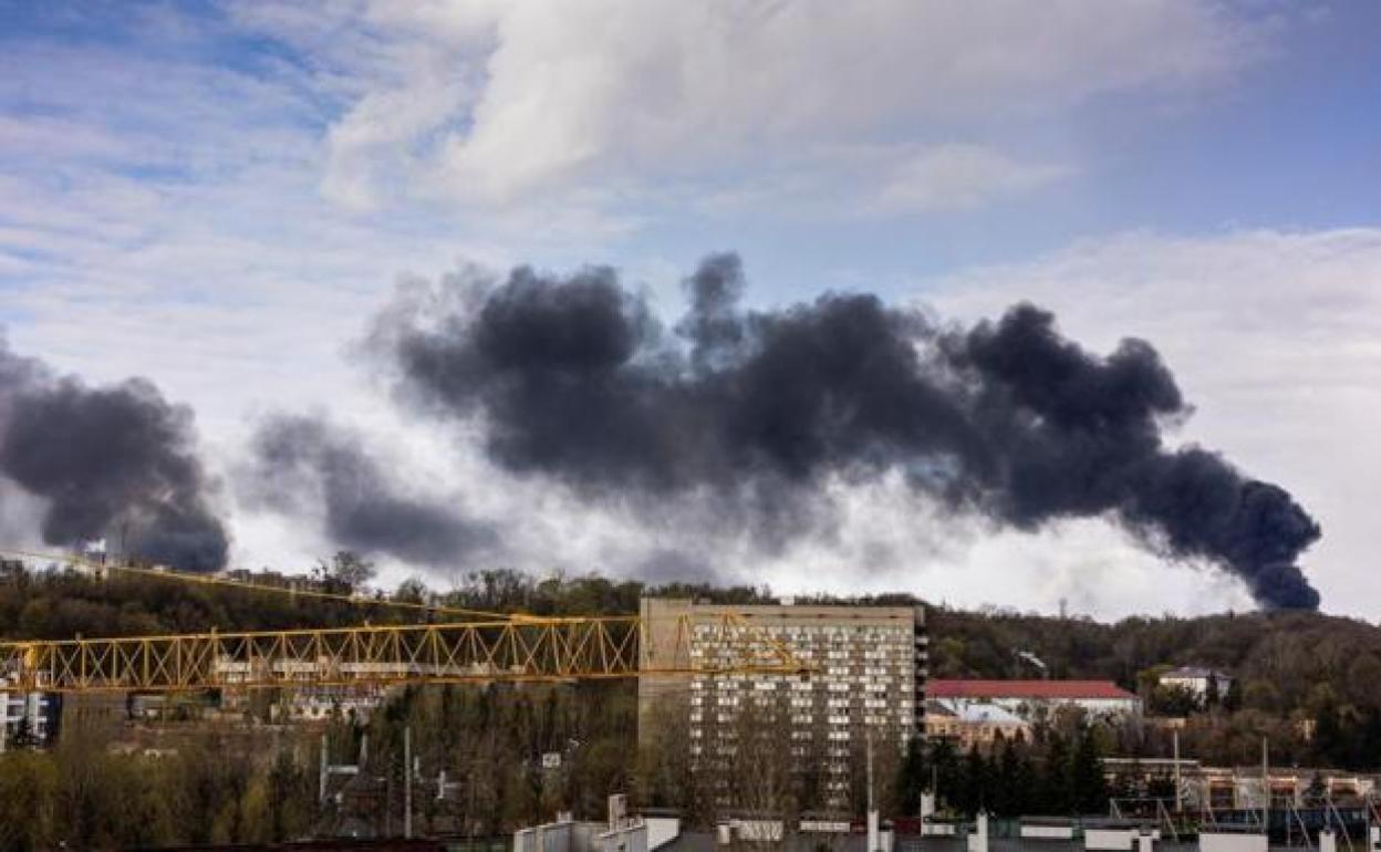 La humareda provocada por el impacto de uno de los misiles en Leópolis. REUTERS/Vídeo: E. P.
