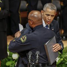 "La policía no espera que les den las gracias a menudo (...) Pero el estilo de vida de este país depende de su servicio. Ellos están respaldando los derechos constitucionales", ha sostenido Obama, el primer presidente afroamericano de la historia de EE UU. A continuación tenía previsto reunirse en privado con las familias de los cinco policías fallecidos.