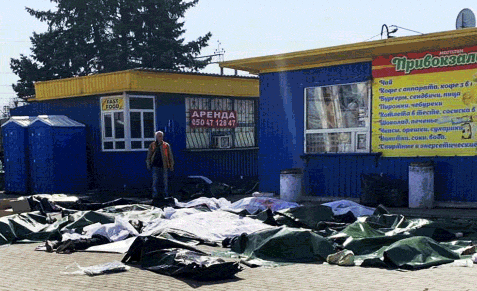 Nuevamente, escenas dantescas de cadáveres de civiles ucranianos y multitud de heridos. Esta vez en la estación de ferrocarril de Kramatorsk, desde donde la población de esa zona controlada por Kiev trataba este viernes de escapar ante la inminencia de una ofensiva rusa a gran escala. Las imágenes y vídeos difundidos por las redes sociales mostraban parte del andén y el exterior de la estación lleno de cadáveres y personas ensangrentadas arrastrándose y pidiendo ayuda.