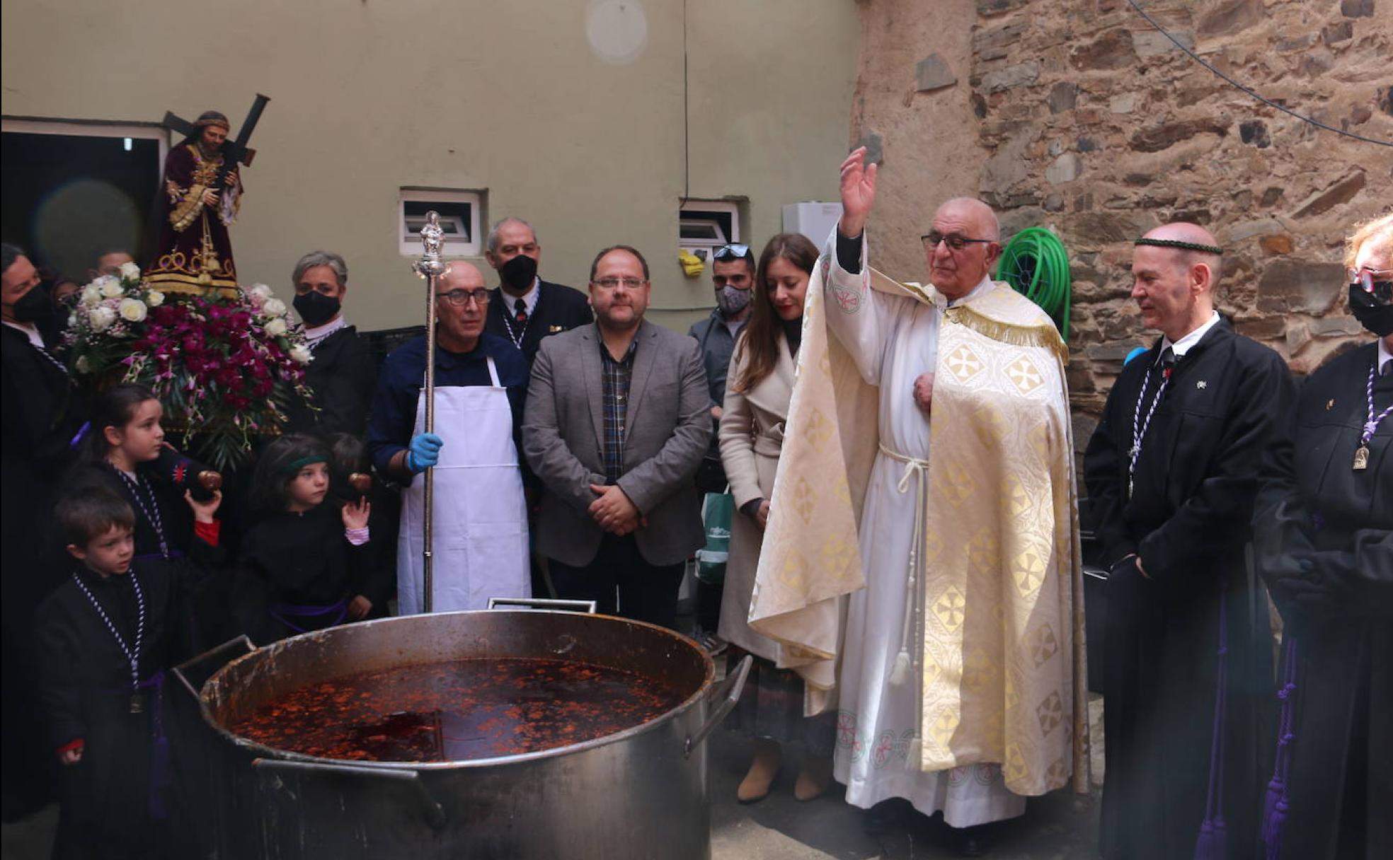 La Cofradía de Nuestra Señora de las Angustias y Soledad ha estado dos años guardando sus ollas sin poder llenarlas de garbanzos y bacalao, pero en este 2022 ha acudido puntual a su cita para dar de comer a más de 4.000 bañezanos.