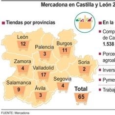 Mercadona incrementó en 2015 sus compras en Castilla y León un cuatro por ciento, hasta alcanzar los 1.538 millones de euros. Una cifra que pone de manifiesto, resaltó la compañía, la «apuesta continua» por la industria agroalimentaria regional en cuanto al volumen de compras a proveedores. Además, este montante supera en un 60 por ciento las adquisiciones en relación con los últimos cinco años. En el marco interno del grupo de distribución, las compras representan el 15 por ciento del total de la industria agroalimentaria regional. Responde en buena parte al cambio en la gestión de frescos, que ha permitido a la compañía disponer de productos de proveedores cada vez más locales y especialistas.