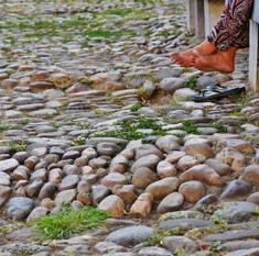 La fotografía premiada se centra en el empedrado y retrata su estado actual de abandono. Sin embargo, consigue transmitir la sensación de sosiego y descanso que la plaza da a sus visitantes