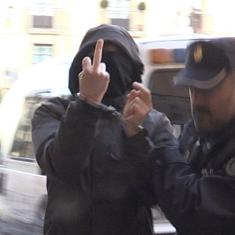 Una 'peineta' y una patada a la puerta en la antesala de una nueva jornada que se sigue en su causa por el crimen de la peregrina.