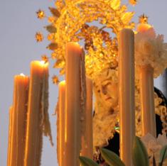 Estremecedor también ha sido el encuentro Plaza de las Concepcionistas, cuanto las bandas han dejado un solo tambor para acompañar a los pasos mientras las monjas del monasterio han cantado a las marianas imágenes.