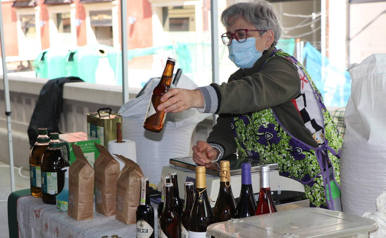 Desde cervezas artesanales hasta legumbres pasando por los quesos. El ecomercado fue poco a poco recibiendo a clientes que traen la alegría a esta iniciativa. «Yo creo que en lo nuestro la clave ha estado en la distribución directa a viviendas, algunos compañeros es lo positivo que han sacado», señala la encargada, que se alegra notablemente con los clientes que pasan. «No es que haya mucha gente, pero lo que me presta es la ilusión, algunos se pasan solo por vernos y es lo que ilusiona».