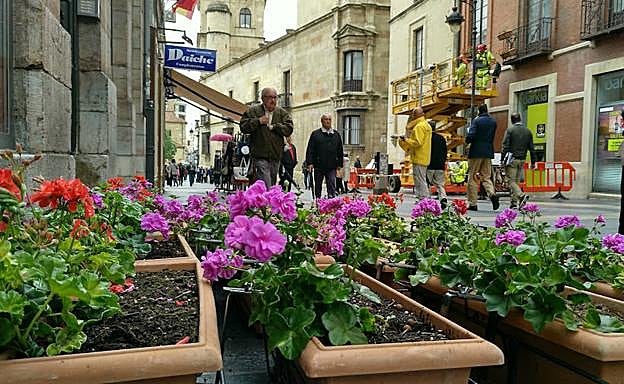 'Marzo ventoso y abril lluvioso hacen a mayo florido y hermoso'. La ciudad de León ha querido aplicar el popular refrán y ha adelantado la instalación de las macetas que decorarán la capital durante todo el verano.