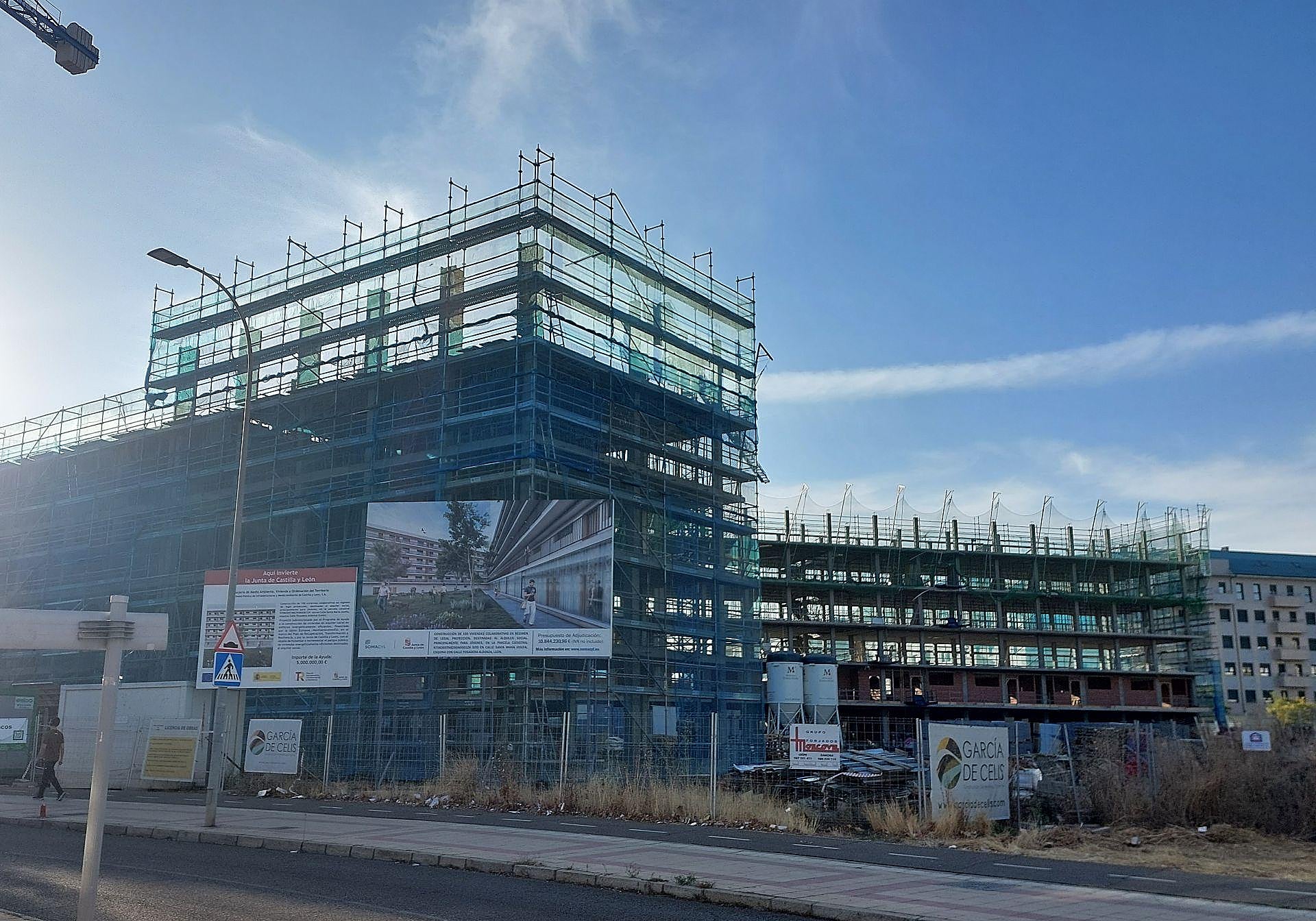 En la misma explanada frente al IES Ordoño II, en la calle Santa María Josefa esquina con Posadera Aldonza, se levanta el bloque de cinco pisos que acogerá la promoción de vivienda de alquiler joven de la Junta de Castilla y León. También fue en el mes de marzo cuando se colocaron las vallas que anunciaban una obra que marcha a buen ritmo y que ya deja ver el esqueleto del bloque.